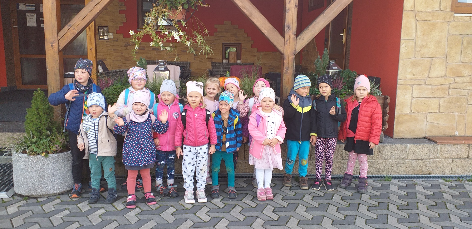 Čas vyhrazený pro pobyt venku trávíme na rozlehlé zahradě s herními prvky, v zimě máme možnost sjíždění kopce na lopatách. Rádi se vydáváme na toulky okolní přírodou, kde pozorujeme své okolí, tvoříme z přírodnin, setkáváme se s živou i neživou přírodou, kde prostě "jsme".